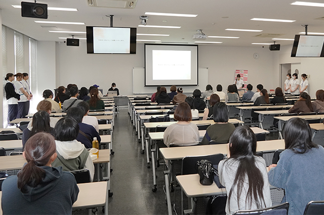 当日は会場教室のキャパシティーを超える多くの方々にご参加いただきました。ありがとうございました。各学部学科の全体説明、学生によるキャンパスツアーや大学生活についてのプレゼンテーション、卒業生トークイベントなど、さまざまなプログラムを通して本学を体験していただきました。